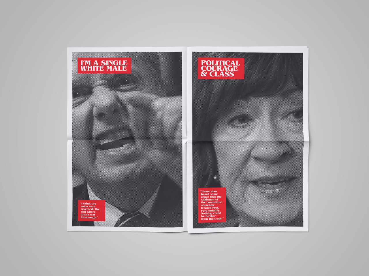 at the height of Brett Kavanaugh's confirmation hearings. Four-page, two-color tabloid published in an edition of 45 for 'Dearly Departed' show at